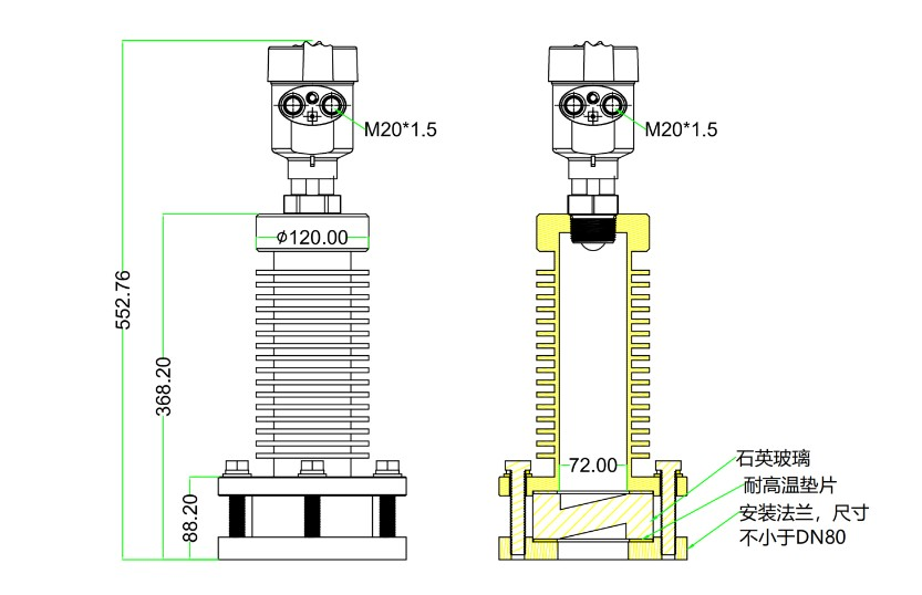 -波束角小(最小5度),能量集中,具有更強抗干擾能力,大大提高了測量精度和可靠性;